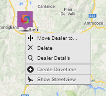 To create a drivetime from an outlet location, first select the outlet and then right click. On the context menu, select 'Create Drivetime' A drivetime of 15 and 30 minutes will be created from the outlet location.