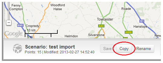 1. Within the scenario map, you can use the Copy button (see below highlighted in red) in the scenario panel: