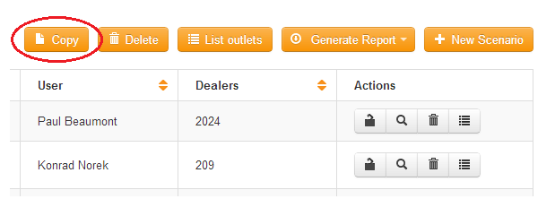 Scenario Manager you can select any scenario in the list and click on the Copy button (see below highlighted in red)