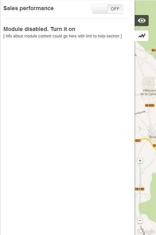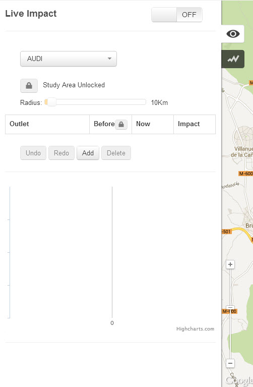 This panel to the left of the map window which provides access to LiveImpact and sales performance functionality.