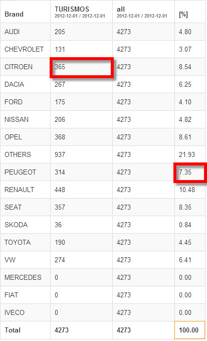 You can now select any value in a cell in the table. For example, in the table above, we could select the cells which have been outlined in red. If we select the first one ( this is the cell for Citroen and the Turismos segment for the dates shown), we will see the registrations for Citroen in the Turismos segment by postcode (geography) all over the map; Look at the map shading as you select this cell.